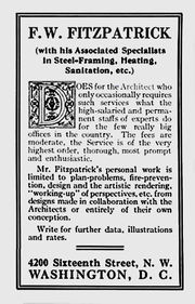 | 20:18, 5 October 2015 | ArchtEngrOfCalif Oct1914 p154 1w.jpg (file) | 213 KB | DMurphy | '''Headline: ''' F. W. Fitzpatrick advertisement. '''Description: '''F. W. Fitzpatrick advertisement. '''Credit Line: ''' ''Architect and Engineer of California''. '''Source: ''' ''Architect and Engineer of California'' (October 1914), 154. '''... | 1 | |