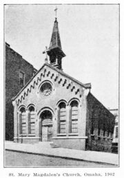 | 09:09, 1 November 2015 | Hagedorn 530 1w.jpg (file) | 243 KB | '''Headline:''' St. Mary Magdalen's Church, Omaha, Nebraska. '''Description:''' St. Mary Magdalen's (German) Church, 1902, 19th & Dodge Streets, Omaha, Nebraska. (Hagedorn, 529-531) Provisionally attributed to '''[[Br. Adrian (Anthony) Wewer, O. F. M.... | 1 | |