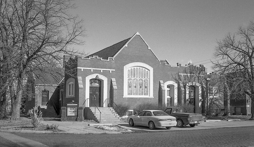 Description: United Brethren Church (1912), 1103 K St. Aurora, Nebraska.Moses N. Bair (1863-1934), Architect (HM01-168)