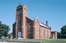 St Patrick’s Catholic Church (1930), NE corner 4th & Walnut, Paxton, Nebraska.[1][4] (KH05-021)