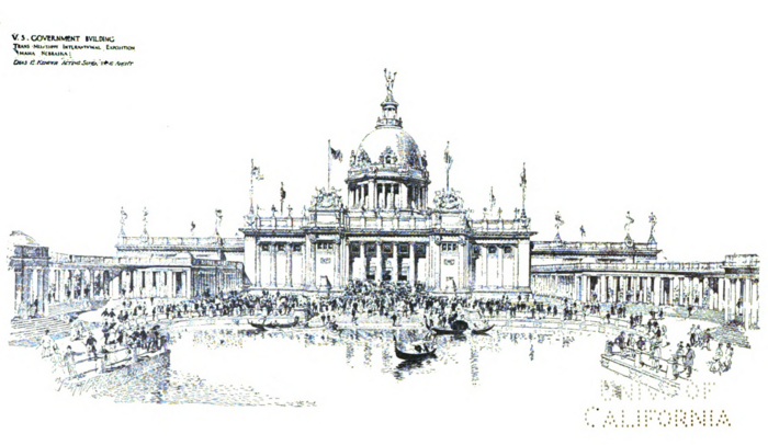 b. The Omaha Evening Bee reported September 24, 1897 that the U.S. Government Building for the Trans-Mississippi Exposition "was designed under the general direction of Charles E. Kemper, acting supervising architect of the Treasury..." and further identified "Edward A. Crane being the draughtsman in immediate charge."[11] The Annual Report to the Treasury Secretary noted that as of September 30, 1897 the drawings for the U.S. Government Building for Omaha's Trans-Mississippi Exposition "...are now well advanced, with a view of obtaining, at an early day, proposals for the construction of the Government building."[12] By October of 1897, a perspective drawing for the U.S. Gov't Building was being widely published, with the design credited to Kemper and drafting to Crane.[13] Omaha architect John L. Latenser supervised construction of the U.S. Government Building at the Omaha exposition, as part of his wide-ranging role overseeing federal construction in Omaha and other mid-western communities.[21]