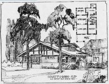 Everett S. Dodds, "Homes of Character...Description...a splendid example of the modern type of one story and a half bungalow," (Perspective sketch and two floor plans), Omaha (Nebraska) Daily News (May 4, 1913), 20.