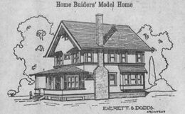 Everett Sherwood Dodds was born March 7, 1889 in Northfield, Minnesota to veterinarian Robert M. and Sophie Simpson Dodds.[5][87] Professionally, Everett became known for being a "specialist in up-to-date residences and bungalows of the better class."[4][10] He moved to Nebraska in 1910 after a couple years of working for an architecture firm in Minnesota.[3] In Nebraska, Dodds was involved in many architectural projects which consisted mainly of houses and schools, first in a brief partnership with Fred Petersen, then for decades in independent practice. Petersen had published numerous house designs in Omaha newspapers before associating with Dodds and they continued frequent publication in their joint practice. After they separated in 1913, Dodds remained a regular contributor of house plans to Omaha papers well into the 1920s. In 1914 Dodds assembled a book of plans which he offered to mail out for 50 cents; a decade later he issued a full-color, 48-page booklet Build a Dodds Home which appears to have been used as a resource by builders well beyond Omaha.[10][18]f]