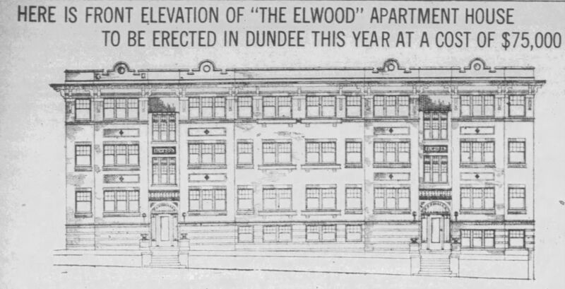 Heading: "Front Elevation of 'The Elwood' Apartment House," Omaha, Nebraska. Description: West elevation for Elwood Apartments at S. 44th & Dodge Streets, Omaha, Nebraska, designed by H. D. Frankfurt. Date: 1916 Credit: H. D. Frankfurt Source: Omaha (Nebraska) Daily News (April 23, 1916), 6D. Rights Usage Terms: Public, non-commercial use, with credit, is granted file names ending in ‘w’ no derivatives.