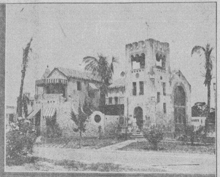 Heading: Louis Racquet residence on Coffee Pot Bayou, St. Petersburg. Description: Perspective view of Spanish Revival mansion designed by Harry R. Cunningham, St. Petersburg, Florida Date: 1925 Credit: Tampa Bay Times" staff photographer Source: Tampa Bay Times (St. Petersburg, FL) (July 5, 1925), 15. Rights Usage Terms: Public, non-commercial use, with credit, is granted file names ending in ‘w’ no derivatives.