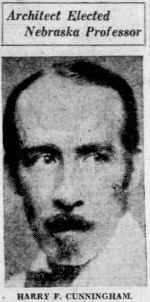 Heading: Professor Harry F. Cunningham. Description: Portrait of Cunningham accompanying announcement of his selection as first head of University of Nebraska Dept. of Architectural Engineering. Date: 1930 Source: Lincoln (Nebraska) Star (April 27, 1930), 1. Rights Usage Terms: Public, non-commercial use, with credit, is granted file names ending in ‘w’ no derivatives.