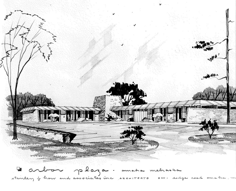 Description: Pirotte Building (1969), 9015 Arbor St., Omaha, Nebraska. Stanley J. How & Associates, Architects.