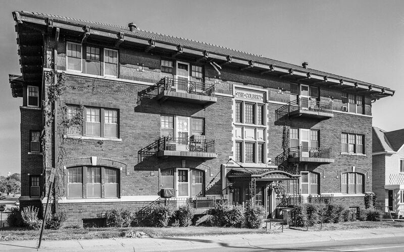Description: Colbert Apartments (ca. 1919), 3870 Harney Street, Omaha, Nebraska. Frederick A. Henninger (1865-1944), Architect.
