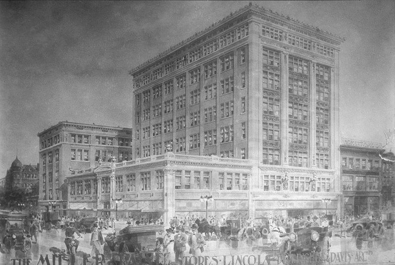 Description: Miller & Paine Department Store (1914), Lincoln, Nebraska. Berlinghof & Davis, Architects. Watercolor rendering by Francis Willford Fitzpatrick (1863-1931), Architect and Artist, 1914.