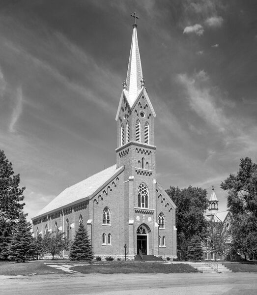 Description: St. Michael's Catholic Church, 1899-1901; Tarnov, Platte County, Nebraska. Br. Adrian Wewer and Br. Leonard Darscheidt, collaborating architects. Exterior looking northwest. Also see the interior view. (PT12-001)