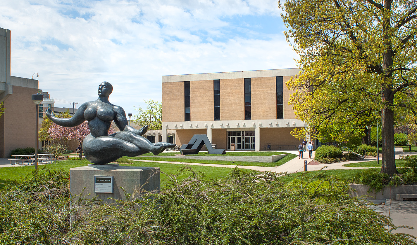 Description: Westbrook Music Building (1967), University of Nebraska, Lincoln, Nebraska. Hazen & Robinson, Architects. General view of the east facade looking west-southwest. Photograph, May 2013.