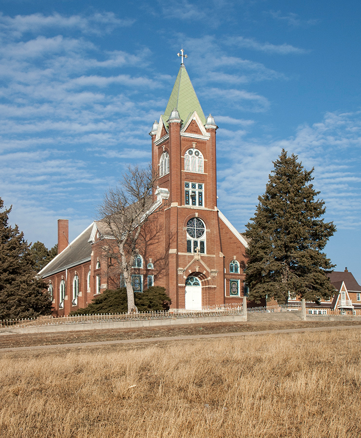 Description: Church of the Visitation of the Blessed Virgin Mary (1904-1905), O'Connor, Greeley County, Nebraska. View looking northeast. James Henry Craddock (1856-1932), Architect. GY00-001.