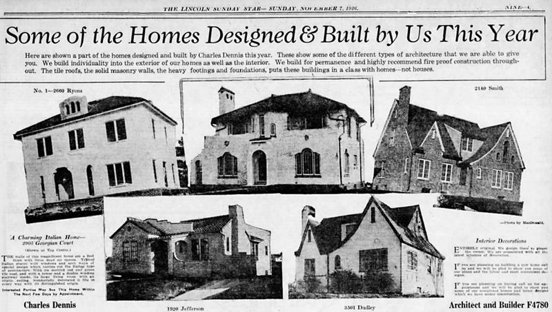 Source: "Some of the Homes Designed & Built by Use This Year", Lincoln (Nebraska) Star (November 7, 1926), 29.