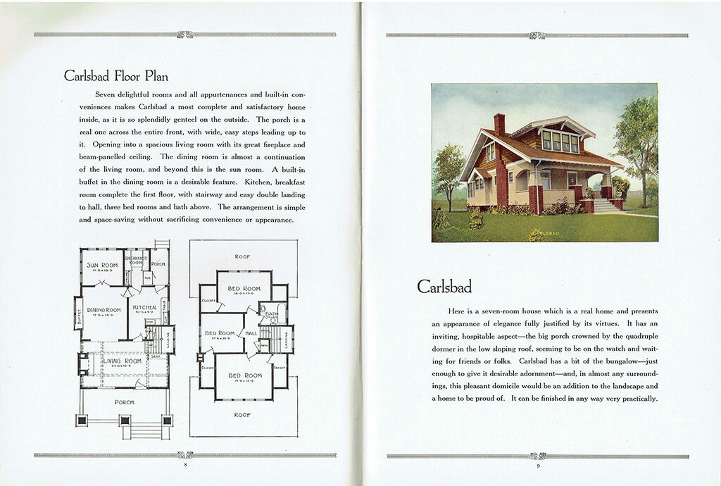 Description: Build a Dodds Home, ca. 1914. Pages 8-9 of plan book of Everett Sherwood Dodds (1889-1958), Architect.