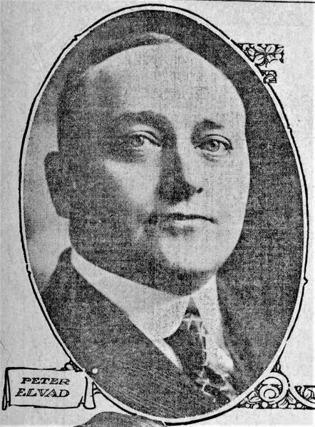 Heading: Peter Elvad. Description: Peter Elvad, President of Bankers Realty Investment Company. Date: 1916 Source: Omaha World-Herald (November 26, 1916), 8B. Rights Usage Terms: Public, non-commercial use, with credit, is granted file names ending in ‘w’ no derivatives.