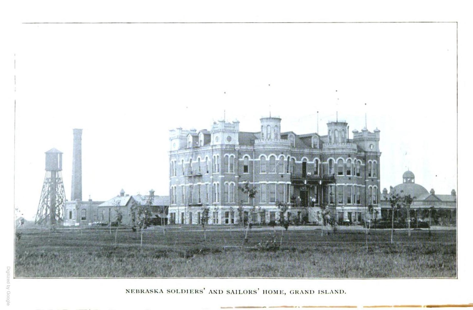 Heading: Nebraska Soldiers' and Sailors' Home, Grand Island Description: View of Nebraska Soldiers' and Sailors' Home, Grand Island, designed by H. T. Julius Fuehrmann, 1887 Date: 1895 Source: W. A. Howard, compiler, Biographical Sketches of the Nebraska Legislature and National and State Officers of Nebraska (Lincoln, Nebraska: Press of Jacob North & Co., 1895), 260. Rights Usage Terms: Public, non-commercial use, with credit, is granted file names ending in ‘w’ no derivatives.