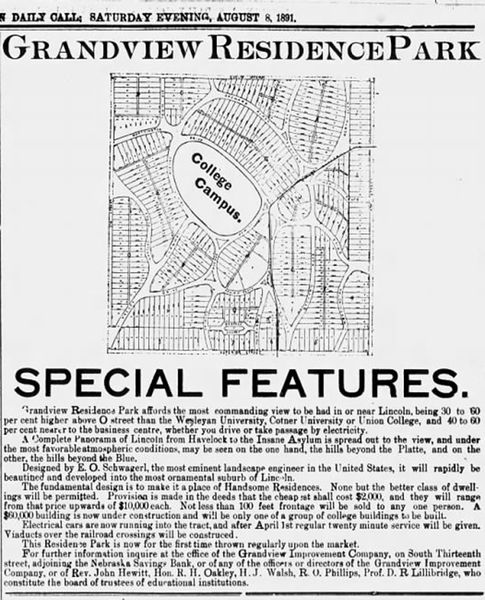 Source: "Grandview Residence Park" Lincoln Daily Call (August 8, 1891).