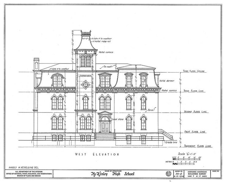 | current | 10:29, 9 November 2015 | 929 × 754 (262 KB) | DMurphy (Talk | contribs) | '''Headline:''' McKinley High School, 1500 M Street, Lincoln, Lancaster County, NE '''Description:''' McKinley High School, 1500 M Street, Lincoln, Lancaster County, Nebraska. West elevation. '''Roberts & Belangee, Architects''' Harold H. Kesselri... |