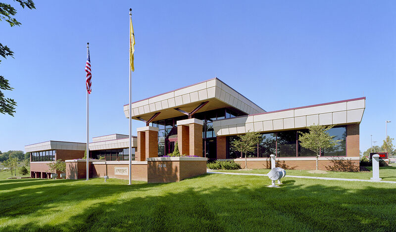 Description: Hawkins Construction Headquarters (2001), 2512 Deer Park Blvd., Omaha, Nebraska. ASD Stanley J. How Architects.