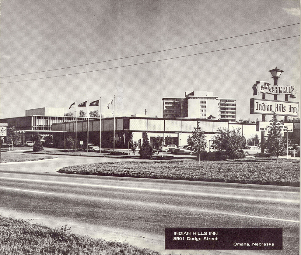Description: Indian Hills Inn (1963), 8501 W Dodge Rd., Omaha, Nebraska. Stanley J. How & Associates, Architects.