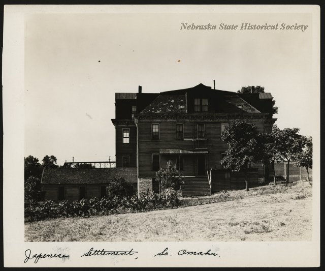 Description = A large two story house with habitable attic used as a Japanese settlement in South Omaha, NE. Many Japanese were brought into South Omaha to work at the various packing plants.
