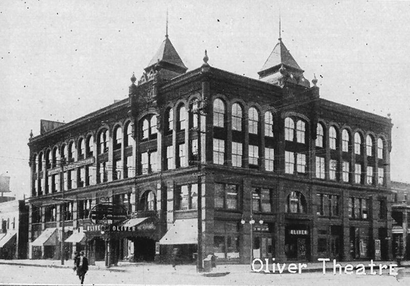 Heading: Oliver Theatre (originally known as Lansing Theatre), 13th & P Streets, Lincoln Description: View from northeast of Oliver Theatre, 13th & P Streets, Lincoln, built 1881 as Lansing Theatre, designed by architect J. B. McElfatrick Date: 1912 Source: Beautiful Lincoln Nebraska's Capital City, Lincoln, Nebraska: Woodruff Press, ca. 1912, n.p. Rights Usage Terms: Public, non-commercial use, with credit, is granted file names ending in ‘w’ no derivatives.