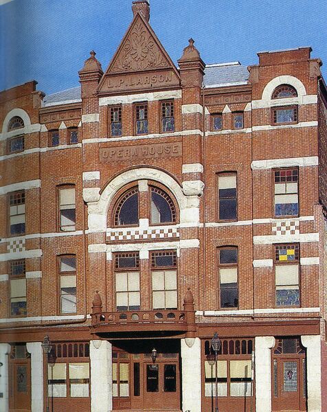 current13:29, 2 October 2017Thumbnail for version as of 13:29, 2 October 2017896 × 1,129 (531 KB)Joelle (Talk | contribs)Information = Love-Larson Opera House Description = '''View of Love-Larson Opera House''' Source = State Historic Preservation Office, Nebraska State Historical Society. Date = Unknown Author = Unknown Permission = Content is available under Attr...