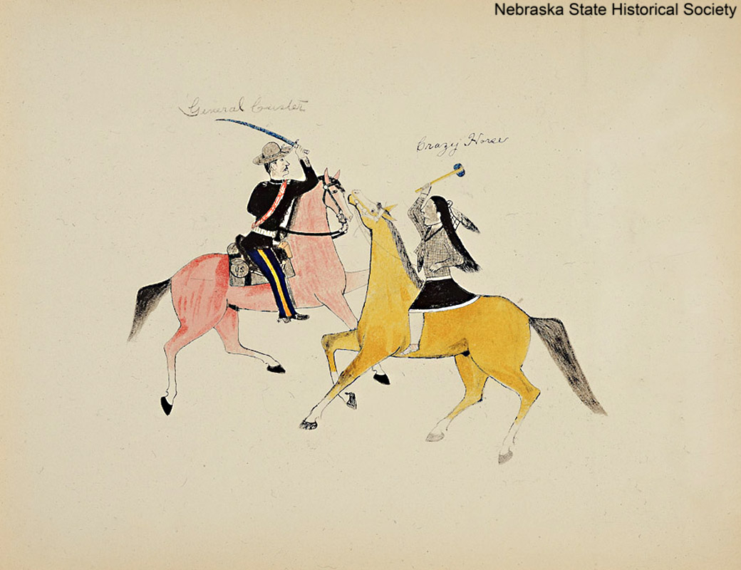 Description = Illustration of Crazy Horse and Gen. Custer in combat.