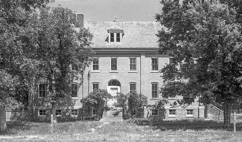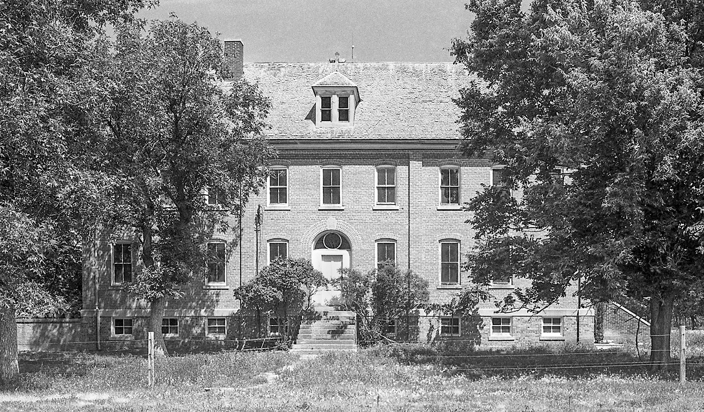 Description: St. Mary's of the Angels Parish School and Sisters' Convent, Grand Prairie Twp, Humphrey vicinity, rural Platte County, Nebraska. Br. Leonard (Lawrence) Darscheidt, O. F. M. (1858-1944), Carpenter-Architect. Also see the historic view, from Hagedorn.