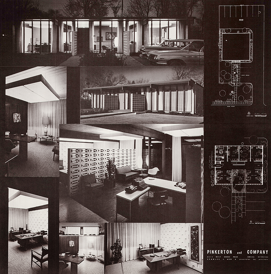 Description: Pinkerton & Company Office Building (1961), 8014 W Dodge Road, Omaha, Nebraska. Stanley J. How & Associates, Architects.
