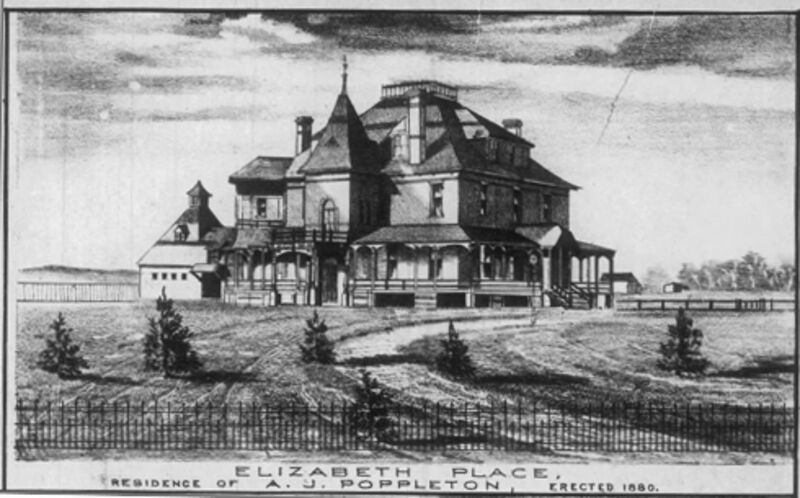 Heading: Elizabeth Place, residence of A. J. Poppleton, Omaha. Description: Perspective view of Poppleton mansion at Sherman and Spruce, Omaha, designed by Chicago architect C. A. Alexander]. Date: 1880 Source: Omaha (Nebraska) Daily Bee (January 1, 1881), 13. Rights Usage Terms: Public, non-commercial use, with credit, is granted file names ending in ‘w’ no derivatives.