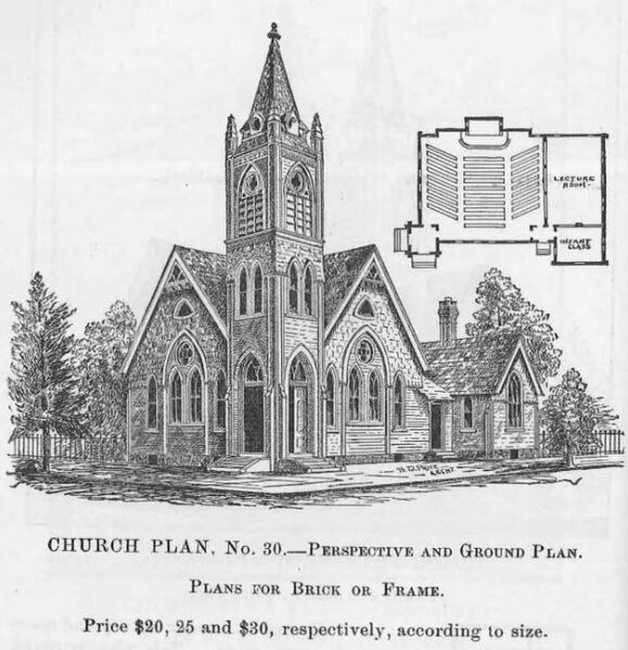 current07:37, 11 March 2025Thumbnail for version as of 07:37, 11 March 2025603 × 624 (105 KB)EZimmer (Talk | contribs)Heading: Published "Church Plan, No. 30" by Benjamin D. Price. Description: Published perspective and floor plan for church by Philadelphia architect '''B. D. Price''', built in Lincoln, Nebraska as G...