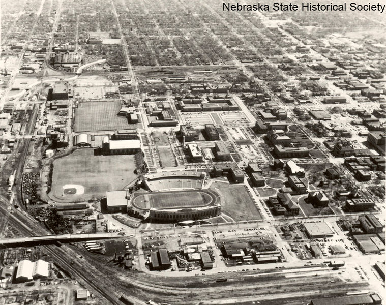 Description = University of Nebraska-Lincoln campus, aerial view, March 23, 1959.
