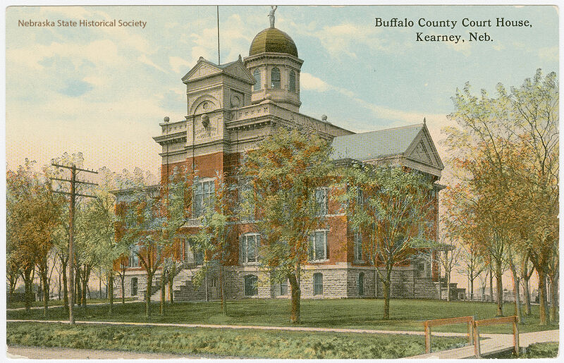 Description: Buffalo County Courthouse, 1887-1890, Kearney, Nebraska. Heinrich Ernst Wagner (1849-1887), Architect. Post card.
