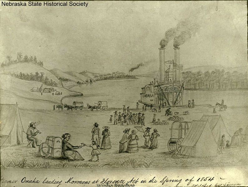 current07:44, 23 April 2015Thumbnail for version as of 07:44, 23 April 20151,060 × 800 (635 KB)WAssist1 (Talk | contribs)Title = '''Drawing of steamer landing Mormons at Florence, Nebr., in the spring of 1854.''' Description = Drawing of steamer landing Mormons at Florence, Nebr., in the spring of 1854. Source = Nebraska State Historical Society, RG2271-PH000001-000005...