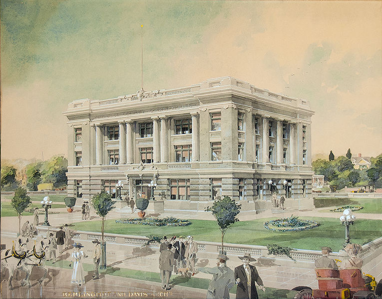 Description = Copy of watercolor rendering by Francis Willford Fitzpatrick (1863-1931), Architect and Artist for Berlinghof & Davis, Architects; proposal for the Howard County Courthouse, St. Paul, Nebraska, ca. 1912