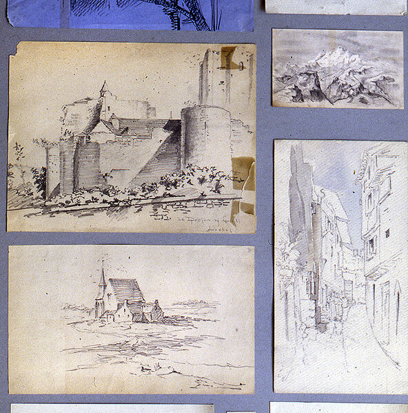 Description: Landscape sketches by Thomas R. Kimball, Europe, pencil on paper, ca. 1887.