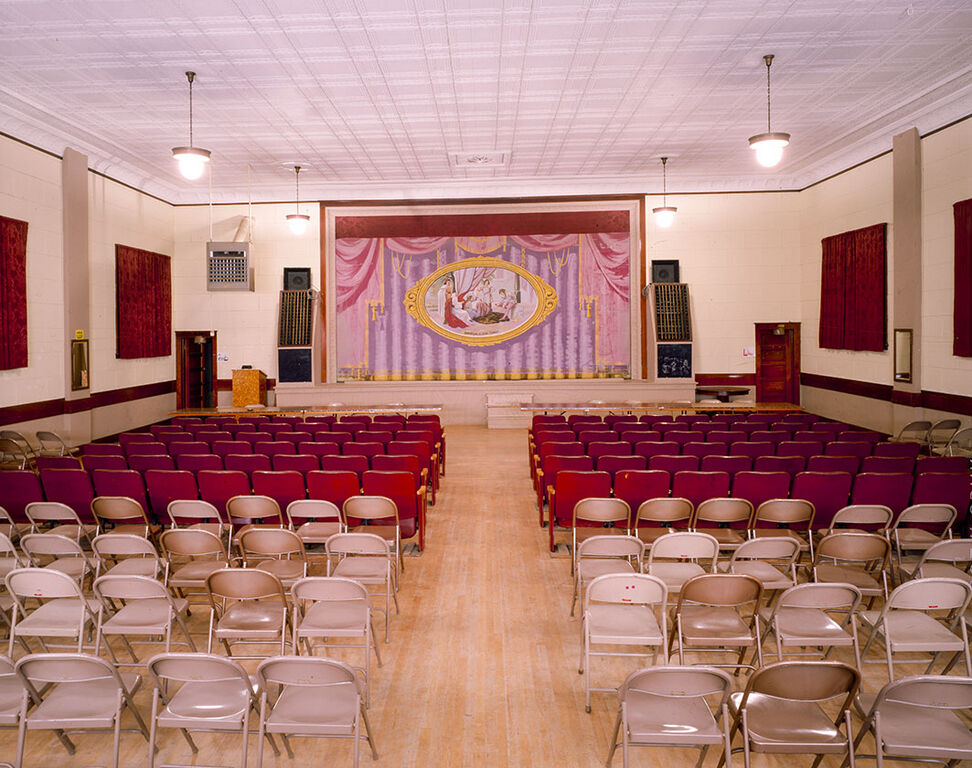 Description: Proscenium curtain (1929), Clarkson Opera House, Clarkson, Nebraska. Byrl J. (Jack) Ballard (1878-1952), Scenery & Fresco Painter.