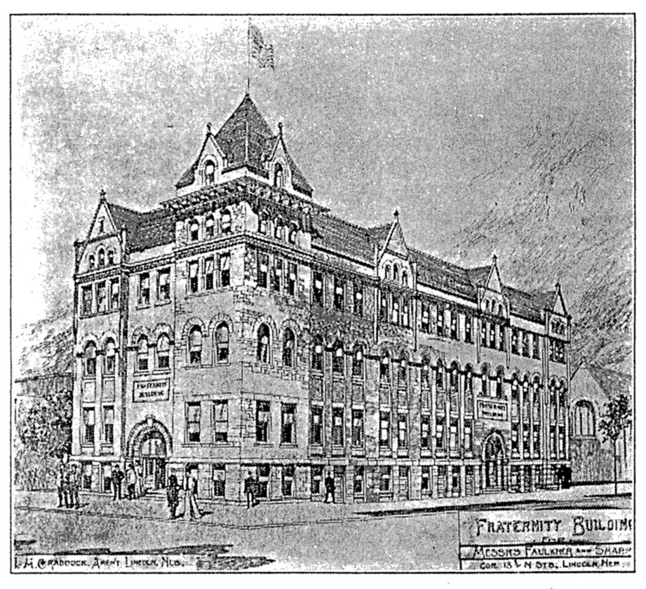 Description: Royal Highlander Fraternity Building, 1902, 13th & N, Lincoln, Nebraska. James Henry Craddock (1856-1932), Architect. Architect's drawing from the Royal Highlander magazine.
