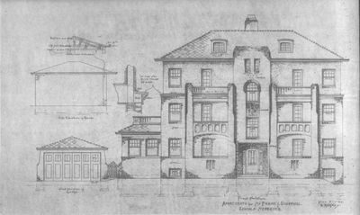 c. The Kitchen Duplex is a very distinctive, Prairie School-influenced design. The building permit lists Ridgway as both builder and architect, perhaps the first project on which he claimed the role of "architect."[30][31]