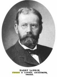 Harry Lawrie was born June 17, 1858 in Scotland. In 1887 Lawrie had had nine years of architectural experience in Scotland and was associated with several important buildings there. Circa 1883, Lawrie immigrated to Chicago and was hired into the office of Burnham & Root. Here he worked on projects including the Art Institute and the Traders' Building. Prior to coming to Omaha, Lawrie had also worked for W. W. Clay in Chicago and was for two years (1885-1886) the president of the Chicago Architectural Sketch Club. He won the Anderson Pressed Brick Company Prize of the Chicago Architectural Sketch Club in March 1886, and he got first place in the “Clock Tower Design Prize” of the Chicago Architectural Sketch Club for “Timepiece,” 1886. On January 1, 1887, Lawrie became one half of the Mendelssohn & Lawrie partnership. This later became the firm Mendelssohn, Fisher & Lawrie. Lawrie married to Ellen Halley "Nellie" Webster (1857-1931) in Illinois in 1884. He died on July 21, 1935, and was survived by their two daughters.[1][3][4][9][11][21]