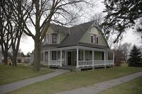 Located in Merna, the B.W. Kellenbarger House was constructed in 1906. This Queen Anne style house is generally a rectangular shaped, one-and-one-half-story frame structure with a cross-gabled roof. The one-story wrap-around porch has Tuscan columns and a spindled rail. The Kellenbarger House is significant as a fine example of the Queen Anne style of architecture in Nebraska.