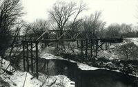 Between 1897 and 1910, Gage County contracted for perhaps as many as two hundred of these standardized riveted Warren pony trusses. At the time of the bridge survey in 1990, thirty-two were still in existence. The sixty-foot span of the Big Indian Creek Bridge located near Wymore and constructed in 1903, is technologically significant as the longest of these survivors.