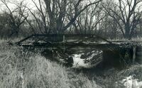 Constructed in 1898 near Wymore, this bridge, which crosses over Sicily Creek, is technologically significant as one of the three oldest of thirty-two small, steel, rigid-connected Warren pony trusses of a type found only in Gage County. They are characterized by a relatively lightweight superstructure and a rare suspended U-bolt connection of the floor beams to the superstructure.