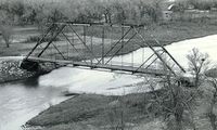 When a massive ice jam carried away the existing bridge over the Loup River south of Columbus in 1886, the Platte County Supervisors immediately began considering a replacement. The following year the county awarded a contract for a bridge consisting of four, 248-foot through trusses. The bridge carried heavy traffic - first as a county road, then the Lincoln Highway and finally on U.S. Highway 30 - until its replacement with another truss, completed in 1933. That August heavy flooding washed out virtually all of the bridges over the Niobrara River in Sheridan County. The Sheridan County Commissioners purchased two of the spans of the Columbus Bridge and erected them to replace damaged structures. Four of the panels were removed from one of the trusses, shortening its span length to 166 feet, and it was erected at the Colclesser crossing, eleven miles south of Rushville.