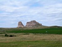 Located in the Bridgeport vicinity this complex includes Courthouse and Jailhouse Rock, two prominent erosional remnant buttes; a portion of the Overland Trail dating 1856-69; an early historic Plains Apache archeological site; and remains of the Courthouse Pony Express Station. From as early as 1812 through the westward migrations of the mid-nineteenth century, travelers recognized the rocks as major landmarks.