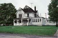 Located in Pawnee City, the large frame dwelling is a good example of the Queen Anne style. Known as the "Hempstead Mansion," the house was built in 1887-88 by E. F. Hempstead, who came to Nebraska from Illinois in 1886. Hempstead was a businessman, founder of the Pawnee Electric Light Company, and owner and president of the Nebraska State Bank.