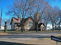 Constructed in 1904, the first Presbyterian Church is located in Spalding. Built in the Tudor Revival style, the church is an irregularly shaped, one-story wood frame structure. The interior features a simplified Akron plan layout.