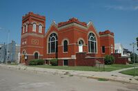 This Madison church is architecturally significant as a modest but representative example of the Romanesque Revival style. Wide rounded arches over windows and doors, multiple towers and the use of different colored brick are all hallmarks of the style. In addition, this building is also significance for its adherence to the Akron Plan, where a central rounded portion of the building is divided into individual "pie-shaped" classrooms for Sunday school instruction. The church also features beautiful stained glass windows depicting various biblical scenes.