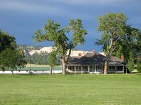 Fort Robinson, located near Crawford, was established in 1874 to protect the nearby Red Cloud Indian Agency, and remained an active military post until 1948. It was a cavalry post until 1919 and after World War 1, became a quartermaster's remount depot to provide horses for the U.S. Army. In 1942 a war dog reception and training center was added; a prisoner of war camp was located at Fort Robinson from 1943 to 1946. The fort was transferred to the U.S. Department of Agriculture in 1948 for use as a beef cattle research station. In 1971 title to Fort Robinson was granted to the state of Nebraska.Significant events in the history of Fort Robinson were the 1877 killing of Sioux Chief Crazy Horse, the 1879 Cheyenne Outbreak, and the participation of troops from the fort in the 1890-91 Sioux Campaign on the nearby Pine Ridge Indian Reservation. The U.S. Army Equestrian Team trained at Fort Robinson in preparation for the 1936 Olympics.